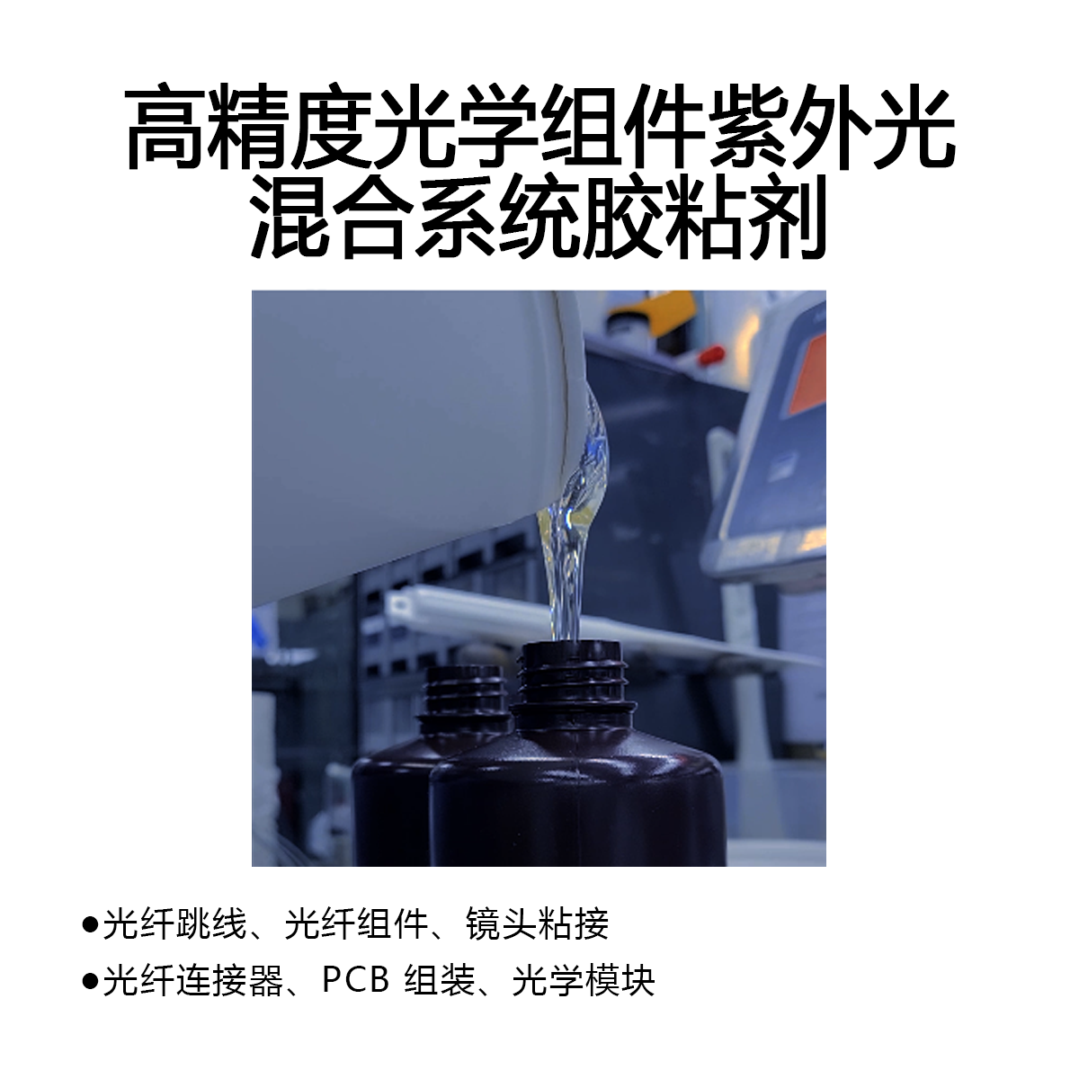紫外光(UV)混合系统胶粘剂是一种通过紫外线照射固化的高效粘合材料。它不仅在使用过程中减少了等待时间,提升了工作效率,而且具有出色的耐化学品、耐高温、抗冲击等性能,广泛应用于电子、汽车、医疗器械等多个行业。
