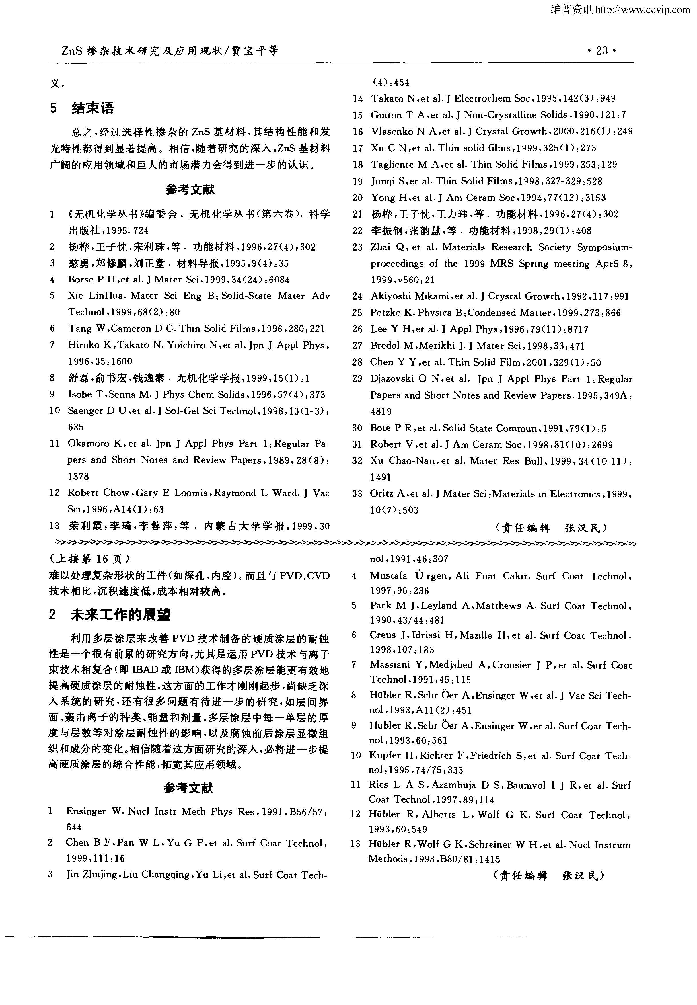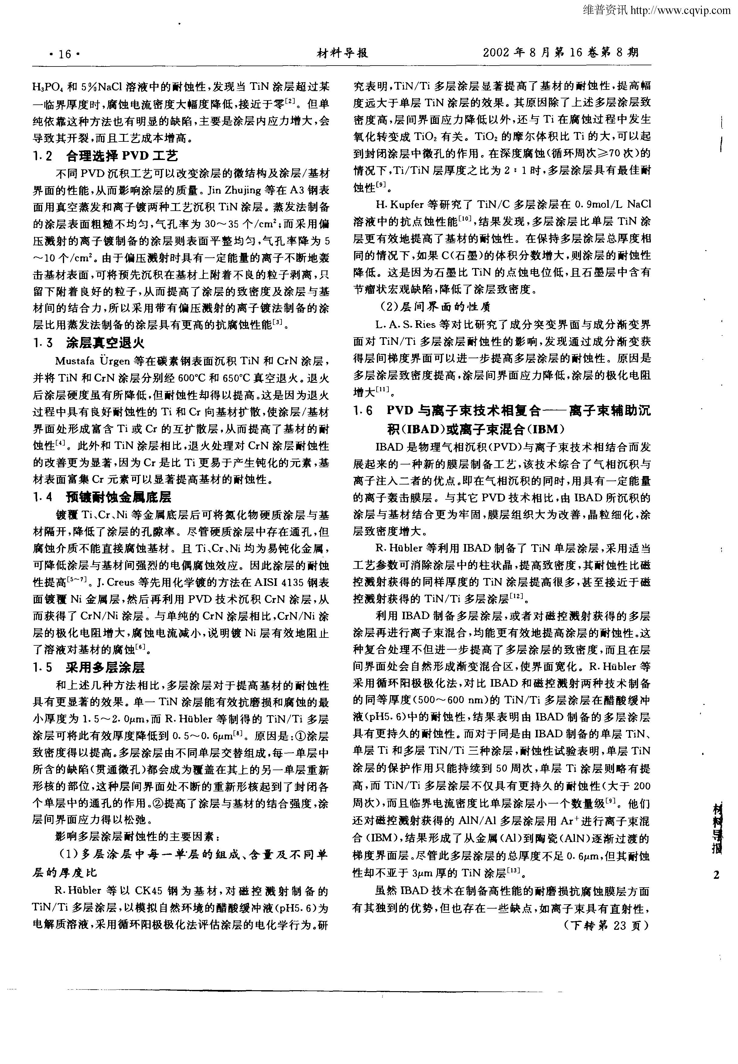 根据物理气相沉积技术制备的硬质涂层的腐蚀机制,指出提高硬质涂层的抗腐蚀性能的关键在于提高 涂层的致密性和涂层/基材界面的性能。对提高硬质涂层耐蚀性的各种措施分别予以评述,提出了今后的研究方向