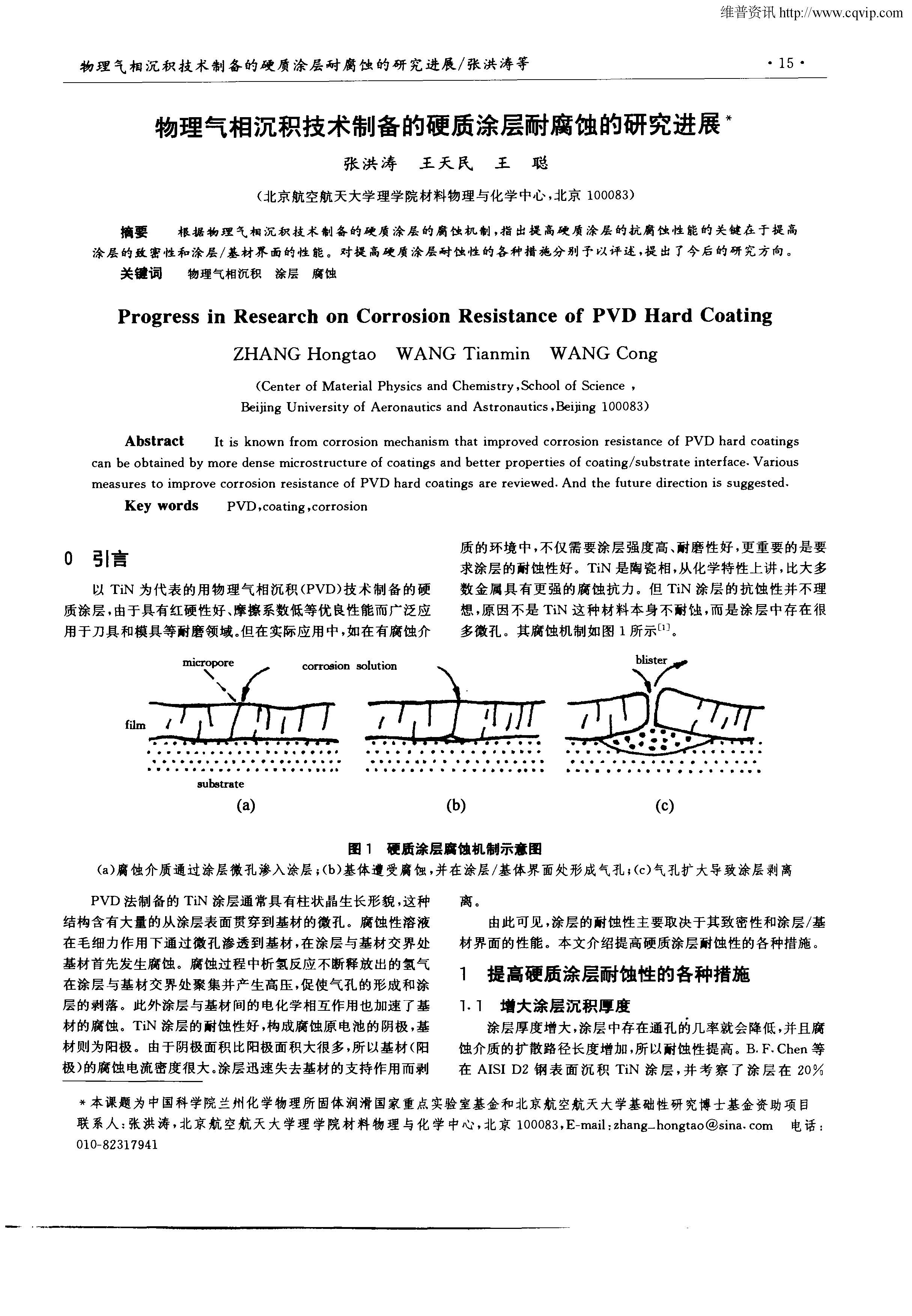 物理气相沉积技术制备的硬质涂层耐腐蚀的研究进展