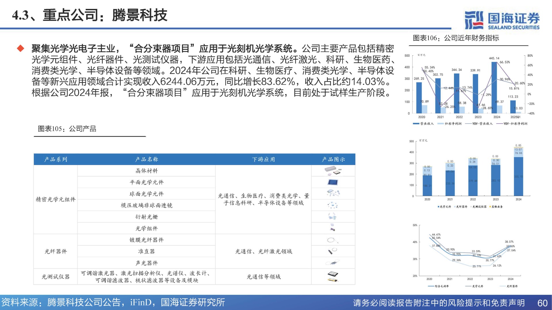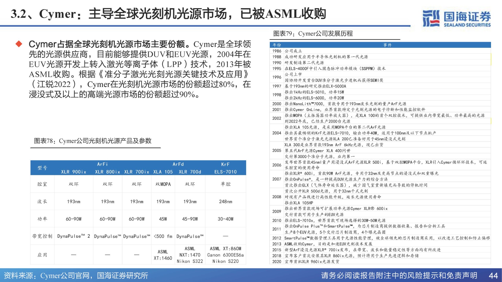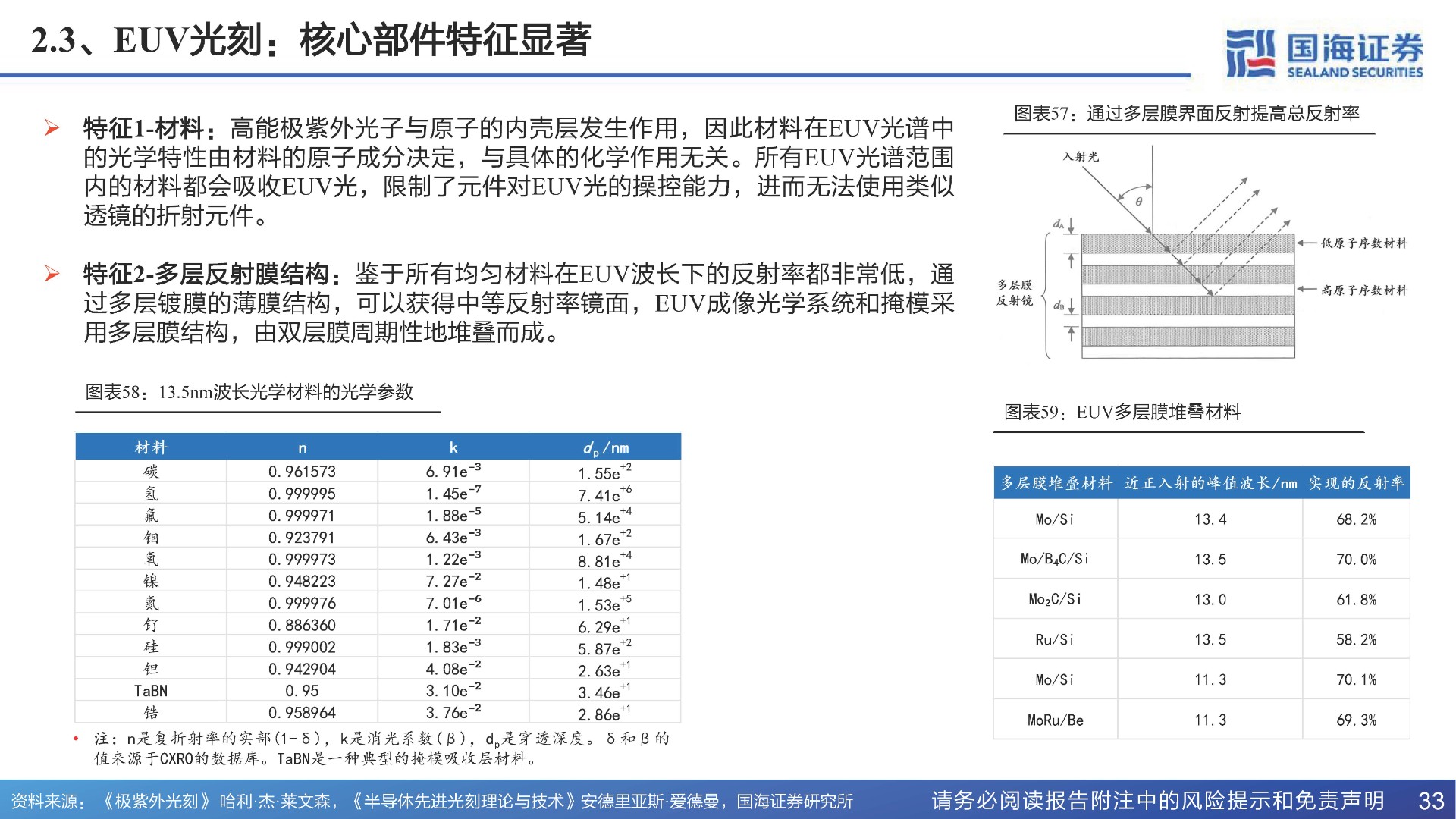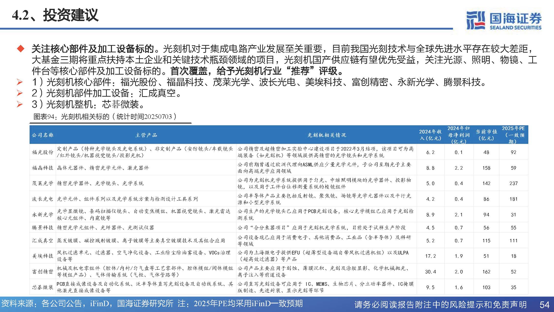 本篇报告解决了以下核心问题:1、光刻机核心部件的主要类型、基本原理、市场空间,EUV光刻机核心部件的差异性;2、ASML的产业协作 模式、核心部件主要供应商;3、光刻机国产化历程、现状,核心部件及加工