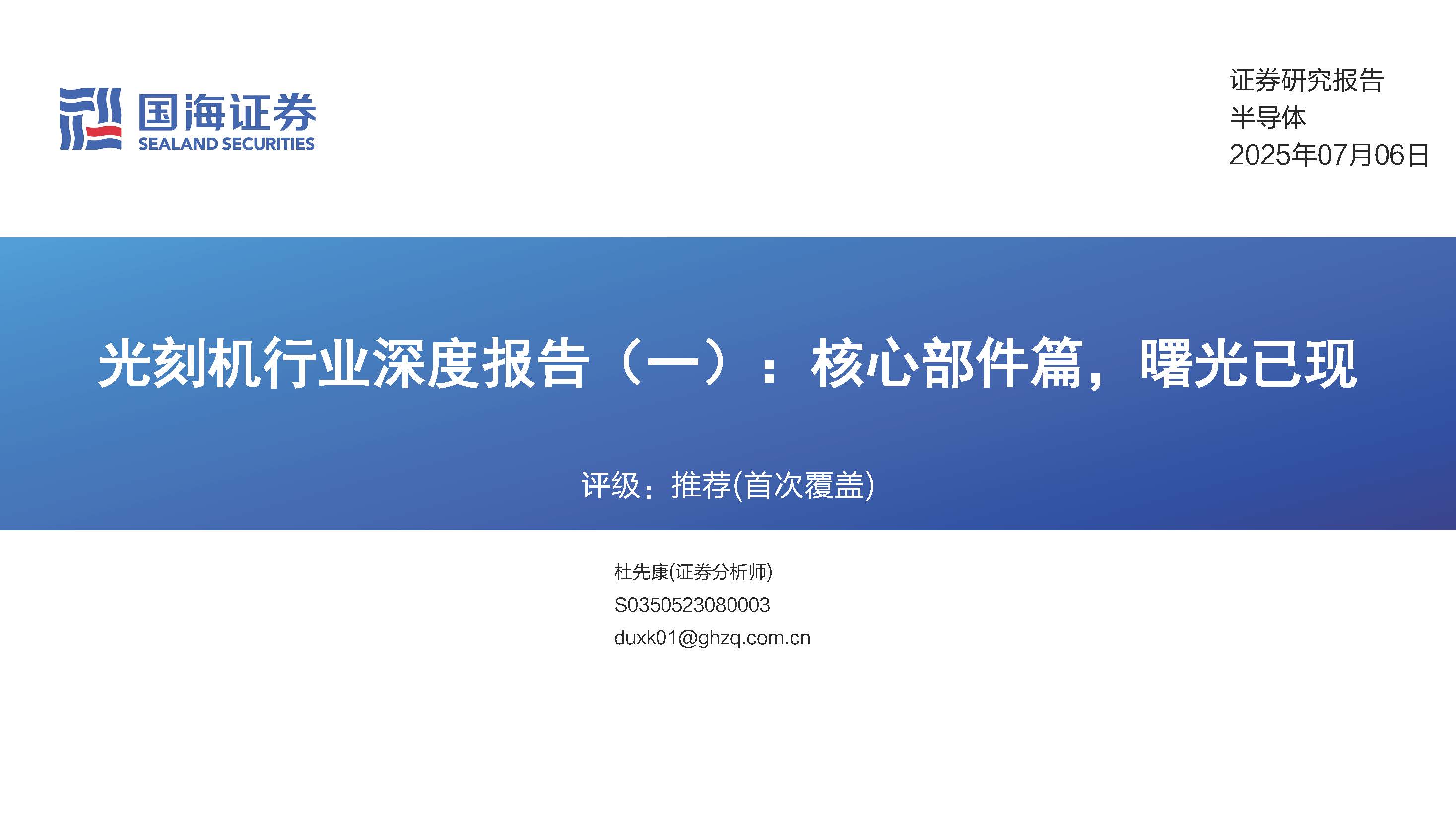 光刻机行业深度报告(一):核心部件篇,曙光已现
